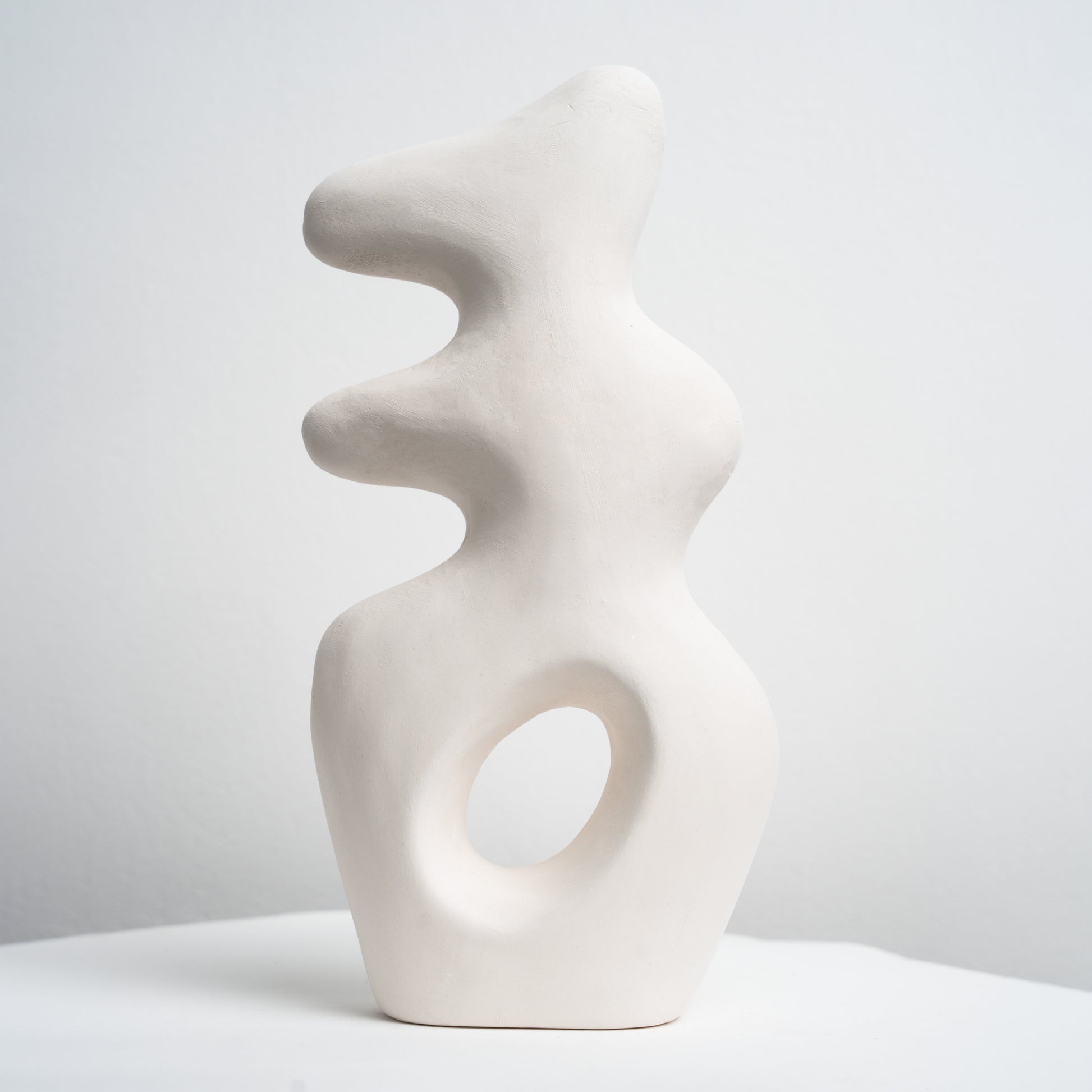 Biomorphic, mid-century–inspired sculpture with soft organic curves and a central cut-out. A modern statement piece and a dreamy canvas for gradients or speckles.