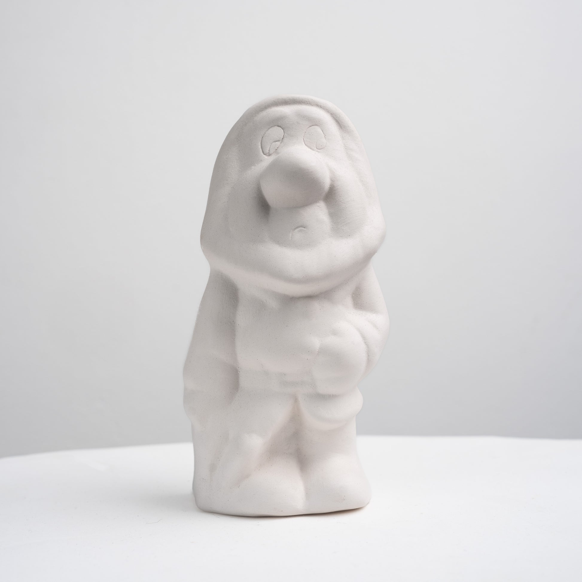 A chunky, storybook-style dwarf with a big nose and simple coat details—full of charm and easy to paint. The smooth, absorbent bisque surface is perfect for bold colour blocking, fine linework for seams and belt, and dry-brushed shading. Great for fairy-garden themes, kids’ painting sessions and whimsical shelf décor.