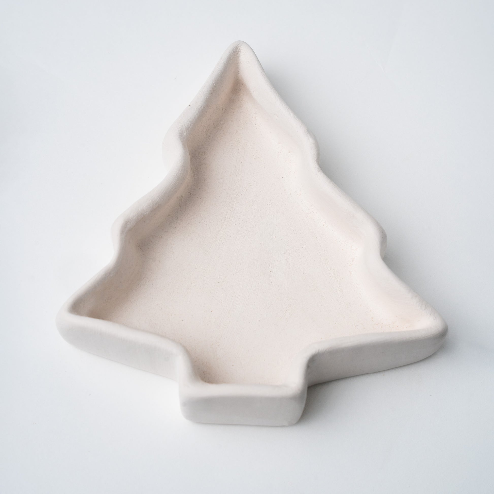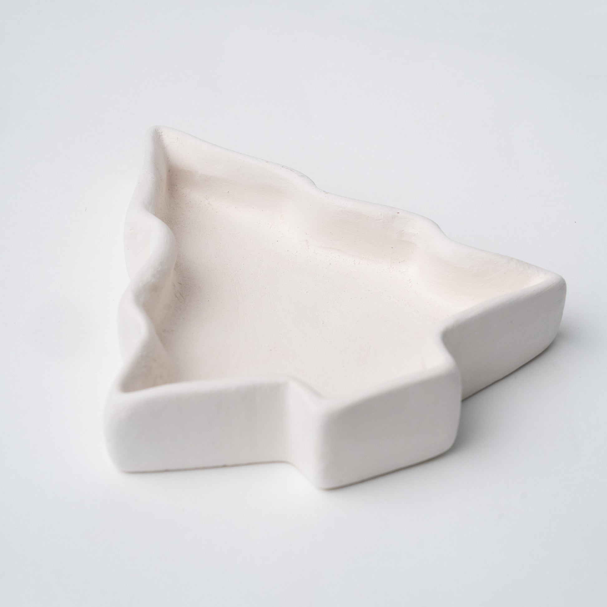 A festive bisque dish shaped like a fir tree, with softly rippled branch edges and a shallow, easy-to-paint well. Perfect for cookies, trinkets, and a lovely canvas for colour blocking, fine linework, or metallic accents to make holiday motifs pop.