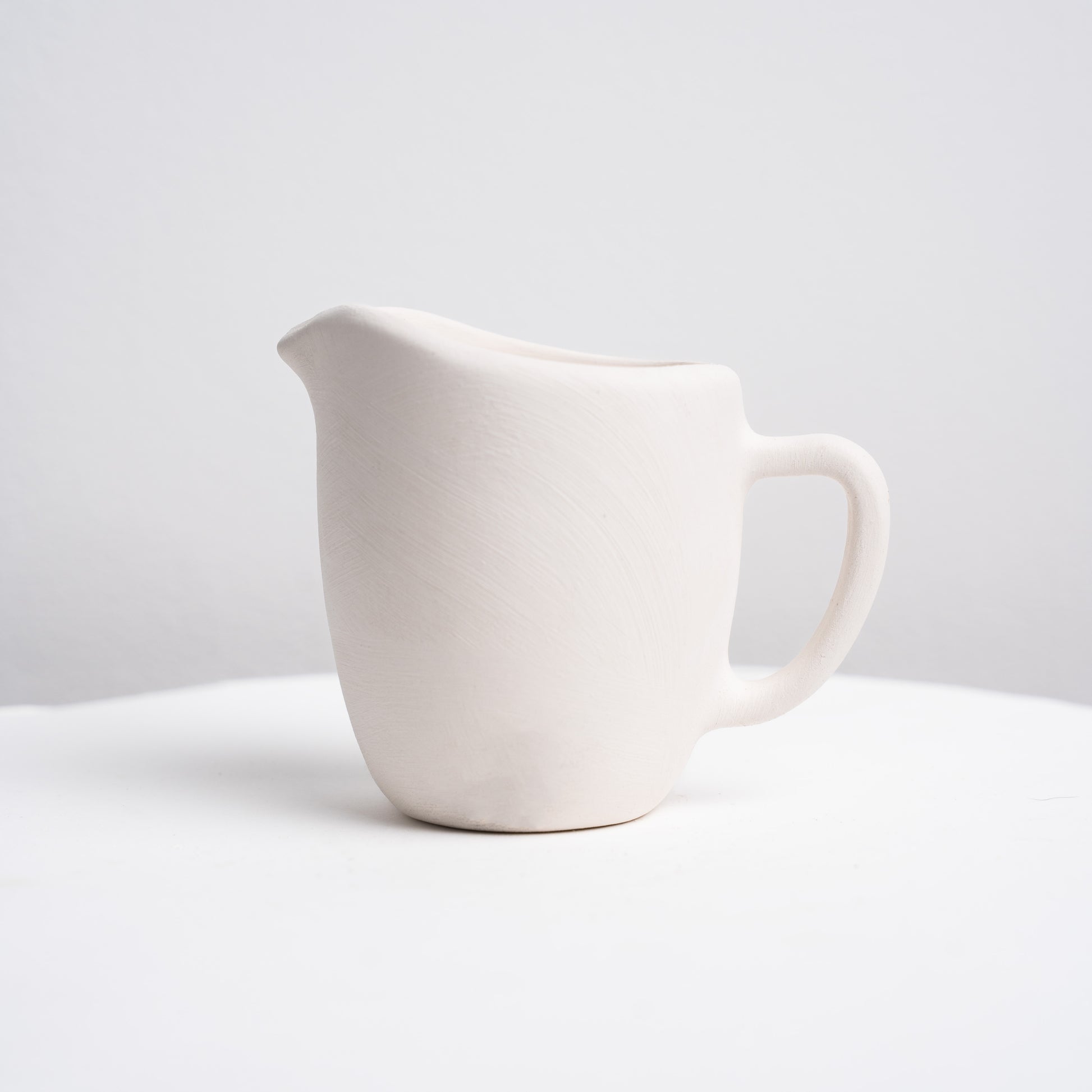 A petite bisque milk jug with a smooth rounded body, easy-pour spout and comfy handle—ideal for serving milk or cream alongside coffee. The clean surface is great for colour blocking, line art or simple patterns; fires to a glossy finish after painting.