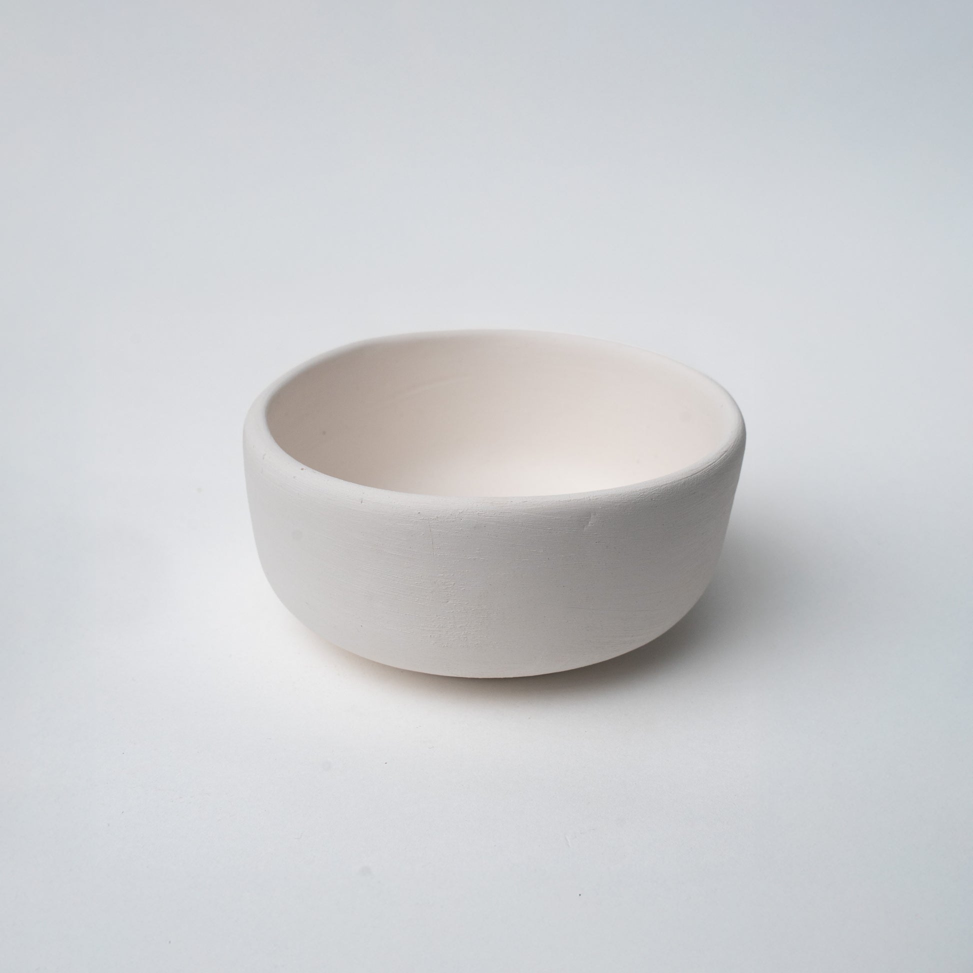 A compact round bisque bowl with straight sides and a softly curved interior—simple, sturdy, and satisfying to paint. The smooth, absorbent surface is perfect for colour blocking, stripes, dots, or a single glaze wash, making it a versatile pick for dips and snacks, trinkets, or mini planters in studio sessions and take-home kits.